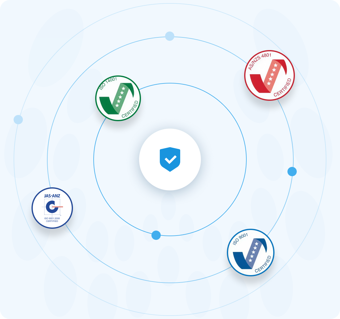 Our ISO certifications are issued by certification bodies accredited through JAS-ANZ, the government-appointed Joint Accreditation System of Australia and New Zealand. This independent oversight provides additional assurance that our management systems are audited against recognised international standards and that our certificates can be trusted by clients and regulators.